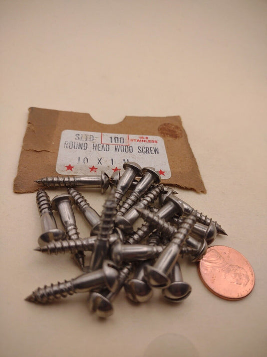 #10 x 1" 18-8 Stainless Round Head Slotted Marine Wood Screws (20) pack SSWS44